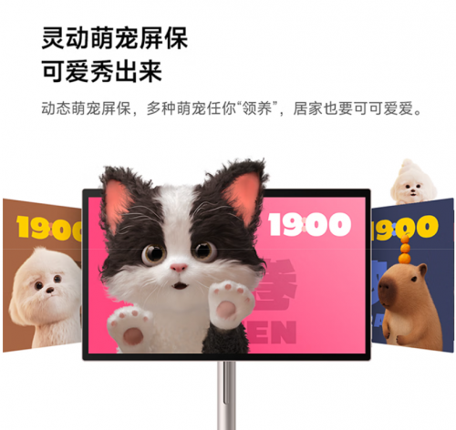 值得一提的是,小米闺蜜机Max 27还支持个性化动态萌宠屏保,撒娇卖萌的小猫小狗、憨态可掬的卡皮巴拉等多种萌宠任你“领养”,可爱溢出屏外,居家体验更舒心。同时闺蜜机还聚合了爱奇艺、优酷、腾讯视频等主流视频平台的丰富影音资源,大屏追剧刷视频播放更畅快,播放MV时也可同步显示歌词,随时打造居家私人KTV。此外闺蜜机还可当作Switch等游戏机扩展屏、电脑移动扩展屏、手机投屏观影使用,工作娱乐两不误。