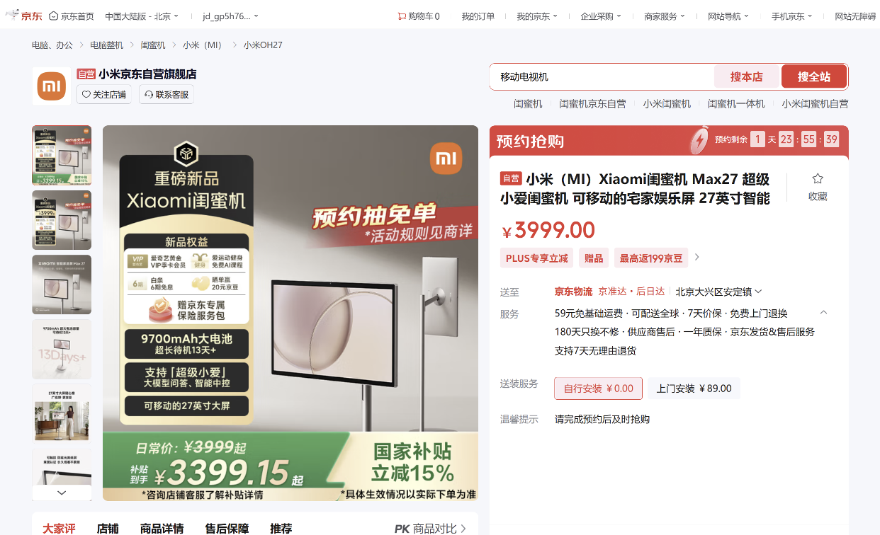 小米闺蜜机Max 27不仅是一块可随心移动的大屏,更是居家的贴心助手。目前该款产品正在京东热销中,买闺蜜机来京东,省钱更省心,想要尝鲜体验小米闺蜜机Max 27带来的便捷与智能,那就认准京东下单吧。