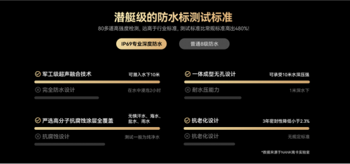 在产品矩阵搭建上,南卡覆盖百元入门到千元高端价位,满足不同消费群体的预算需求。同时,针对多元使用场景进行优化:跑步、骑行场景中,推出业内首款专项优化风噪的产品,减少气流干扰;游泳、暴雨等场景下,产品具备 IP69 级防水性能,远超行业平均标准。