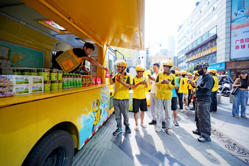 据了解,该活动从武汉、南昌、长沙、重庆等全国50余个城市接力。“统一绿茶X美团冰饮车”成为高温下一道独特的暖心风景线。截至活动收官,已累计43万瓶冰镇饮品无偿送到快递员、外卖骑手、环卫工人等城市一线工作者手中,每一瓶绿茶都承载着对劳动者的敬意,为他们驱散暑热、补充能量,让数万名默默守护城市的工作者感受到实实在在的清凉与关怀。