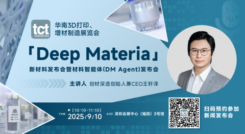 9月10日,Deep Material(创材深造)将在深圳会展中心(福田)3号馆TCT INTRODUCING,发布三款颠覆性金属增材新材料——中高强铝合金、镍基高温合金和模具钢,兼具高性能与制造效率。同时,材料智能体(DM Agent)首次亮相,开启AI驱动的新材料研发时代。