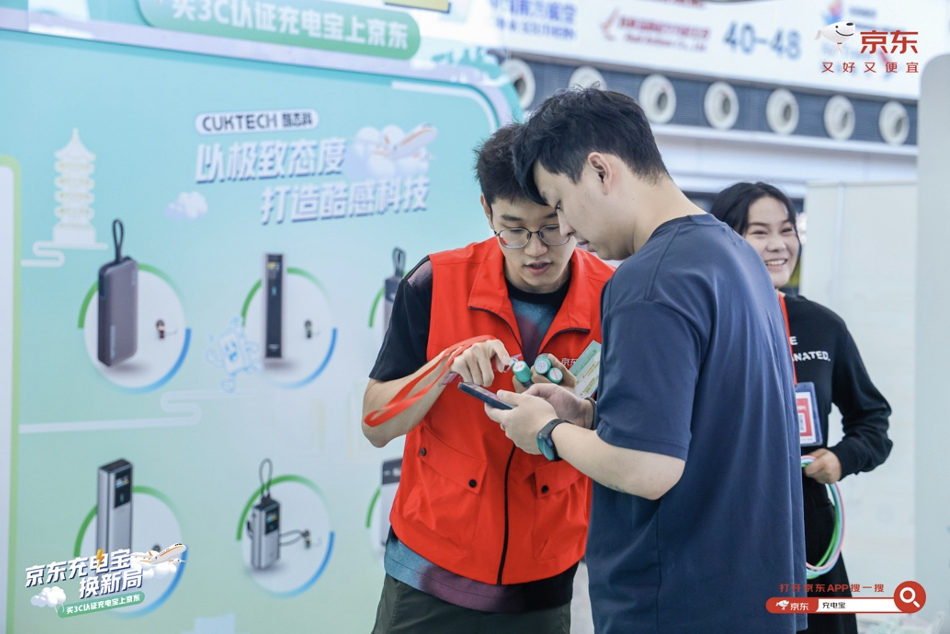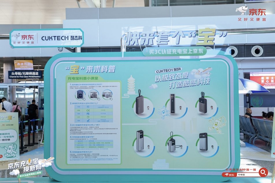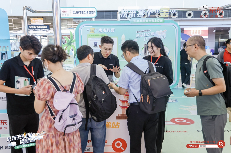 8月28日,京东与酷态科联合在无锡硕放机场T2航站楼推出“充电宝换新局”活动,现场为旅客免费更换符合航空安全标准的充电宝,解决了不少旅客的“燃眉之急”,获得旅客积极响应与广泛好评。活动当日现场气氛热烈,互动展台前人流络绎不绝,众多旅客驻足参与,体验便捷安心的换新服务。