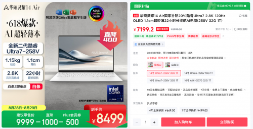 当前购机直降1000元,还可再叠加500元PLUS会员券,部分地区可领取至高20%国家补贴(国补地区可咨询客服了解),最终到手价6699.2元。感兴趣的移动办公党、品质生活家可以上京东搜索#华硕灵耀14 Air#,了解更多产品细节。