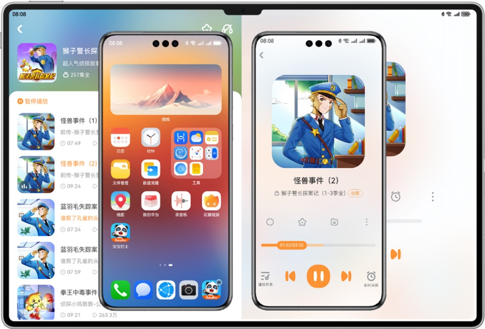如宝宝巴士App,基于HarmonyOS“一次开发,多端部署”的特性,开发者在多端多设备上的开发效率有效提升,同时降低了开发成本,并支持应用跨设备的接续。当用户外出返家后,原本通过手机端收听的节目可在到家后的平板端接续播放,实现鸿蒙生态内多设备形态的无缝部署和一致体验;