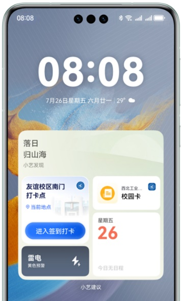 在高校类应用及元服务中,基于用户POI位置,结合小艺建议的服务推荐能力,在用户到达学园校区、食堂/餐厅等地点时,桌面还将主动推荐定位打卡、校园卡付款码等服务功能,为常用服务提供系统级桌面入口,简化用户操作流程。据了解,当前包括北京大学、西北工业大学在内的诸多院校已接入POI相关能力,与HarmonyOS一起,探索高校类应用的数智场景边界。