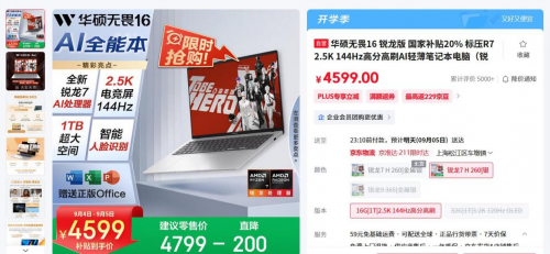 对于即将开启新学期的学生党而言,一台可靠的全能本不仅能显著提升学习效率,更能拓展创作与娱乐的边界。华硕无畏16 2025在性能、屏幕、存储、拓展性等多个维度均表现出色。叠加国家补贴与直降优惠活动,到手价仅为4599元(补贴政策详细请咨询电商客服)。对于追求高效学习和娱乐的学生党来说,这款大屏高能轻薄本无疑是暑期购机的优质首选。