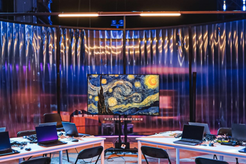 在核心区域“夜务大厅”内,多台三星电视构建了信息与视觉交互的核心节点。卓越的画质表现将活动资讯与玩法指南转化为令人驻足的视觉盛宴。优异的色彩还原能力和画面清晰度为夜间游乐注入科技美感。“夜校”则是夜间充电的课堂,年轻人在此暂时放下生活的琐碎,投入技能进修,用爱好消解内耗。三星电视在此扮演着数字助教的角色,出色的显示效果让舞蹈课程的动作细节、缝纫教程中的面料纹理、摄影大师的光影构图都以最真实的面貌呈现给求知若渴的学员,让夜间学习成为一种视觉享受。此时,三星电视不仅是内容呈现的载体,更是激发生活灵感的重要工具。
