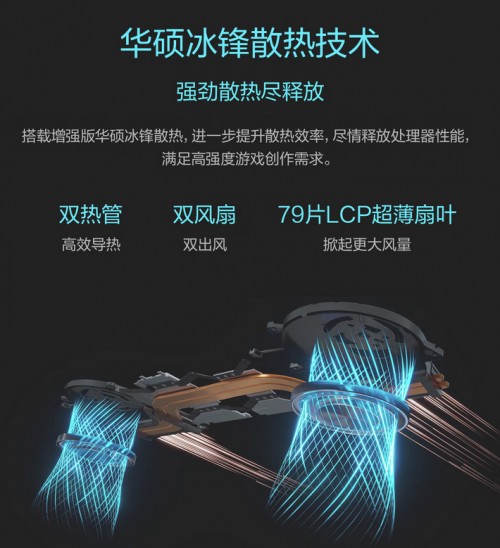 高性能的稳定输出离不开散热系统,在华硕无畏轻薄机身下,还搭载了一套华硕增强版散热技术,由双风扇、双散热管以及每个风扇79片LCP超薄扇叶组成高效散热系统,可快速排出核心部件热量,确保高负荷状态下电脑能够稳定运行。它还有多档散热模式,在图书馆、夜间等安静环境可用安静模式;日常办公选择标准模式;长时间玩3A游戏或运行大型创作软件则开启全速模式,满足不同场景需求。