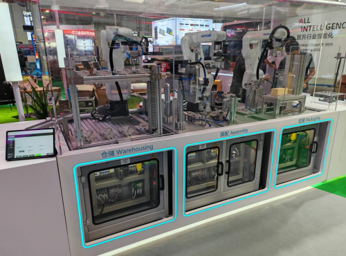 在鲲鹏展区,国创灵梭嵌入式数据库IntarkDB深度融入工业机器人实际应用场景。在具身智能工作站场景中,IntarkDB被集成至拓斯达机器人控制器,通过高效时序数据无损压缩存储、向量数据的存储和高效检索,为拓斯达多台端侧工业机器人的协同作业提供稳定、高效的数据支撑。同时,依托PLCNext平台与openEuler操作系统的适配优势,IntarkDB 精准捕获并高效存储机器人运行的实时数据,有力推动工业大数据价值的充分释放。