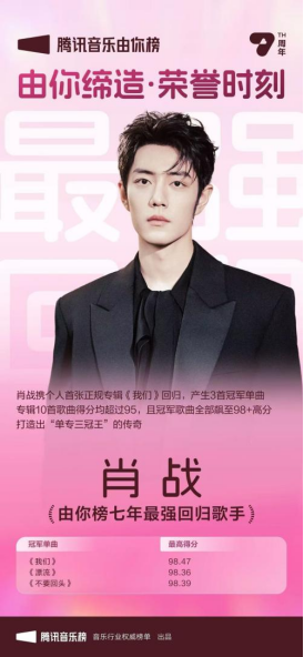 2025年9月16日,腾讯音乐娱乐集团(Tencent Music Entertainment Group,简称“TME”)旗下的权威音乐榜单——腾讯音乐由你榜迎来七周年里程碑。七载耕耘,这份以数据描摹华语流行音乐的榜单已累计见证超8000首歌曲上榜,完成365次揭榜,诞生76位冠军歌手与196首冠军单曲,以数字脉搏记录时代听觉变迁。