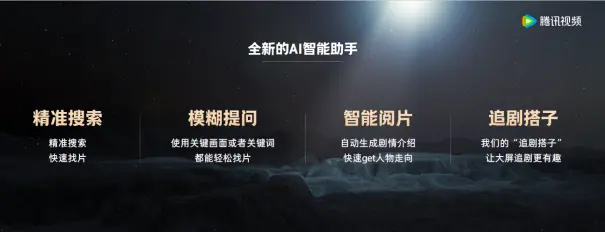 相比于“臻彩MAX+”能够直接为用户带来观看体验升级,AI智能助手则更像一位家庭影音管家,通过遥控器语音按键或定制化远场语音唤醒词,能够聆听不同用户观剧的差异化需求,给出定制化的内容推荐。腾讯视频搭载的AI智能助手拥有高精度语音识别与多轮对话能力,无论用户是通过语音“精确搜索”还是只能描述关键词的“模糊提问”,都能快速定位到合适的作品。