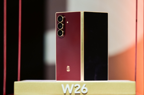 秉承“器以载道”的匠心精神,心系天下三星W26将科技与美学、材质与意境完美融合,彰显了使用者的尊贵气度。“玄曜黑”与“丹曦红”两种配色尽显东方文化底蕴,“玄曜黑”沉稳大气,蕴含内敛而不失锋芒的权威感;“丹曦红”则更显华贵典雅,浓郁的红色与温暖的金色交相辉映,流露自信与热情。经典的金色边框覆以类宝石状浮雕纹理,在光线下折射出若隐若现的璀璨光芒,传递着历经沉淀的尊贵气质。