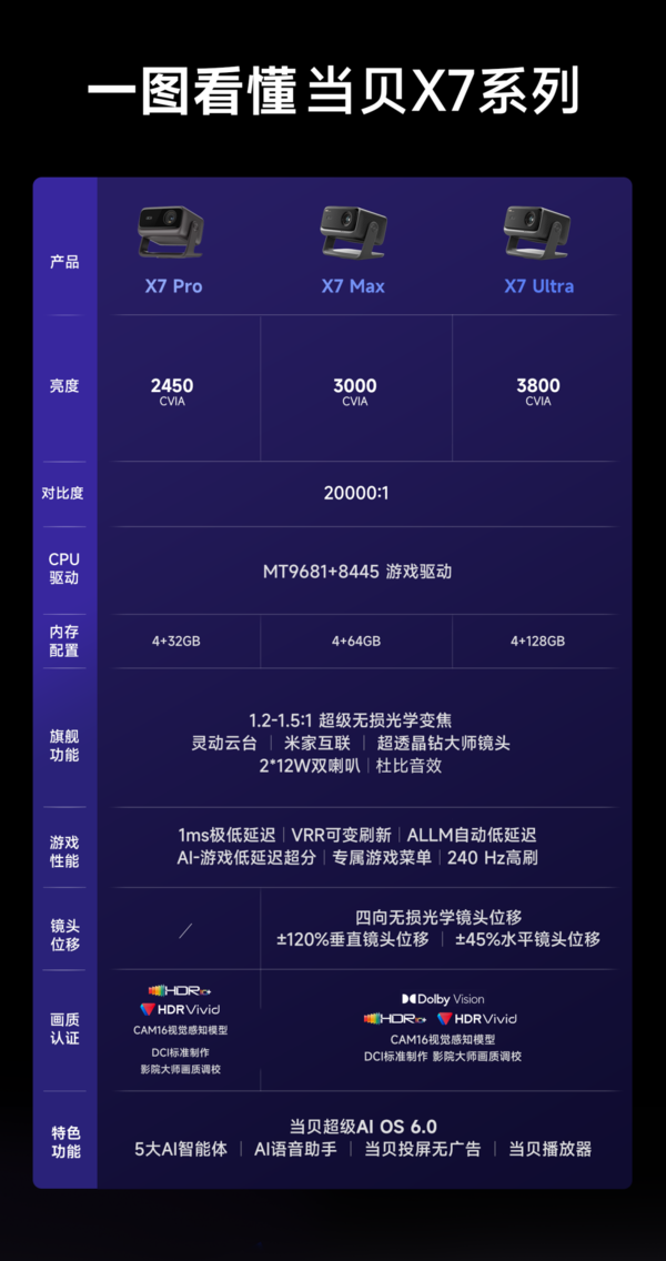 售价6999元的当贝X7 Max,完美支持杜比视界/HDR10+/Vivid HDR。