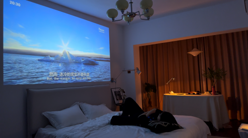 在画质表现上,850CVIA亮度搭配原生1080P分辨率,轻松应对卧室各种观影场景,画面清晰通透。系统还提供了三种不同的观影模式,包括卧室模式、高亮模式、标准模式。夜晚打开卧室模式观影,亮度刚刚好,完全不会刺眼,而且风噪声更小,追剧沉浸感十足。