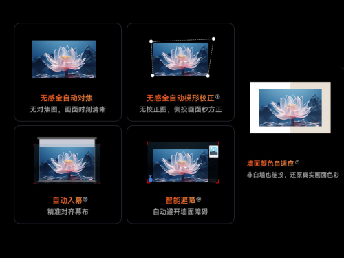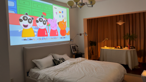在卧室场景中,“便捷” 是提升使用体验的关键。大眼橙C3D投影仪搭载无感自动对焦与无感六轴梯形校正技术,开机后无需手动调节,瞬间即可呈现方正清晰的画面,即使不小心碰到机器,也能自动修正,老人、孩子都能轻松上手;智能避障功能可自动识别墙面插座、挂画等障碍物,避免画面投射在障碍物上,无需反复调整机器位置;墙面颜色自适应技术,让浅米色、浅灰色等非白墙也能呈现精准色彩,不用额外购买幕布,省钱又省心。