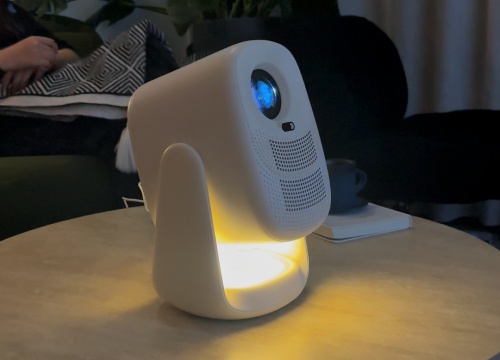 卧室投影的魅力,不仅在于大屏,更在于对氛围的营造与使用的便捷。大眼橙C3D投影仪首创双维调节一体化双臂夜灯云台,将“投影功能”与“卧室氛围”完美融合——底座自带氛围灯,通过物理旋钮可无极调节亮度,夜晚开启投影时,暖柔的灯光漫射在墙面,替代刺眼的主灯,营造出温馨舒缓的观影氛围。