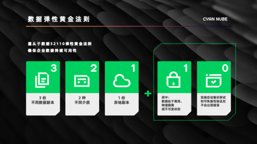 CYAN NUBE企业数据容灾救援解决方案严格遵循 3-2-1-1-0数据弹性黄金法则,通过三重数据副本、两种存储介质、异地备份与离线隔离的多重保障,既满足政务机构电子档案长期存储、安全可追溯的合规需求,也能应对企业因自然灾害、机房故障导致的异地数据恢复诉求,确保数据“不丢失、可恢复”。在安全防护上,方案集成AI恶意软件检测、Yara威胁检测、AES 256加密传输等多重技术,可有效抵御勒索病毒攻击;在适配性与恢复效率上,支持虚拟机、物理机、云主机等多环境备份,以及防勒索、Swift即时恢复、Xland异构恢复等多样化恢复方式,无论是企业误删核心业务数据,还是政务机构档案系统故障,都能快速完成数据还原,最大程度减少业务中断损失。此外,方案依托元SaaS环境实现快速部署,支持资源弹性扩展与统一化运维管理,大幅降低各类组织的部署与运营成本。自成立以来,定钦云始终以技术创新为核心驱动力,持续完善产品体系,先后推出备份管理软件、多云订阅资源管理软件等系列核心产品。