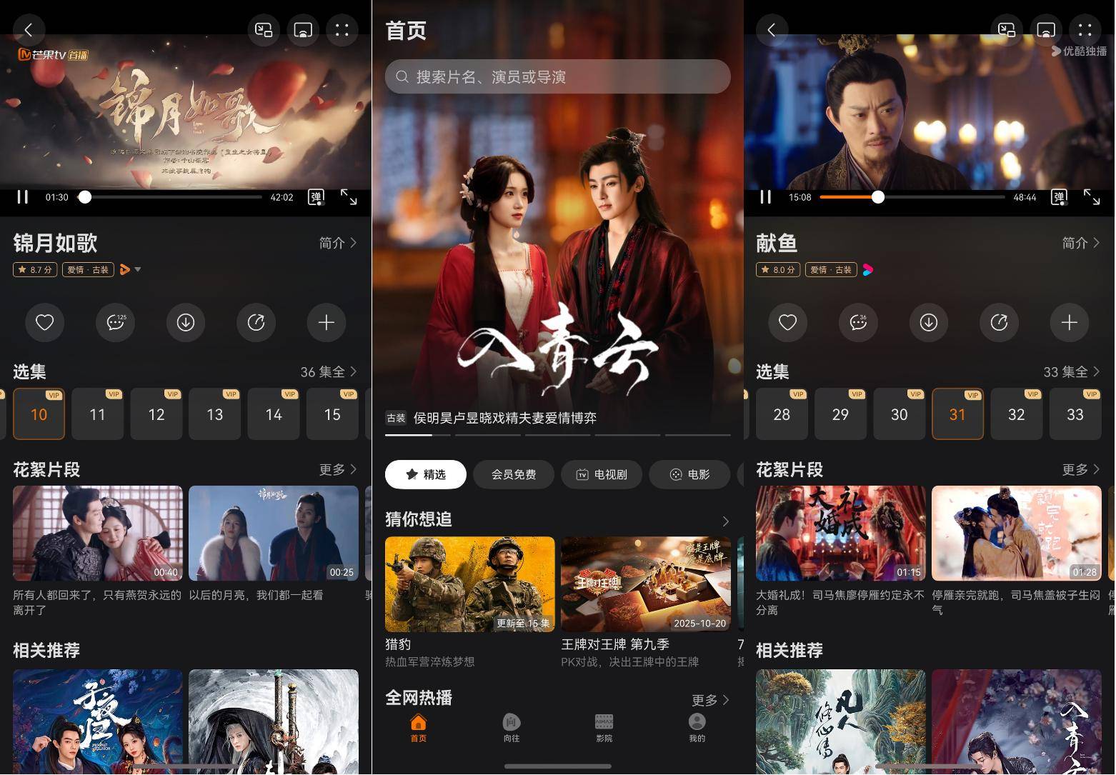 《入青云》里明昊跟昱晓演的“宿敌”从互相对抗到产生倾心,每段对手戏均张力爆棚,高清画质把演员细微的表情都呈现得十分清晰;追完结局还是觉得不过瘾,顺手去点开推荐里的《献鱼》,不用去切换App,也无需再次登录。周末又翻出《锦绣如歌》重新体验一番,这顿操作都在华为视频一个App完成,这种“一站式”追剧集齐的快乐,以前想都不曾想。