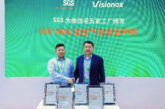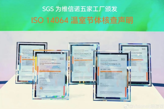 近日,在第八届中国国际进口博览会上,维信诺五家工厂集体获颁ISO 14064温室气体核查声明,进一步夯实绿色低碳责任,彰显可持续发展的责任与决心。此次五家工厂同时获得SGS颁发的ISO 14064 温室气体排放核查声明,既是对维信诺可持续发展成果的认可,也标志着在绿色低碳管理体系构建上,维信诺走在行业前列。