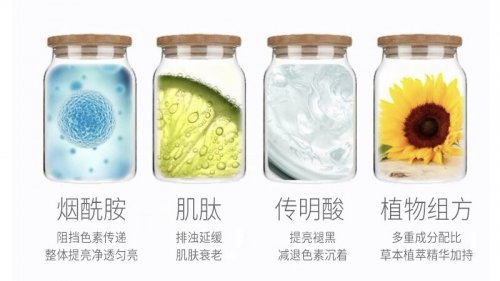 •烟酰胺:维生素B3衍生物,有效阻断黑色素向皮肤表层的转运,其功效与安全性已被大量文献证实。