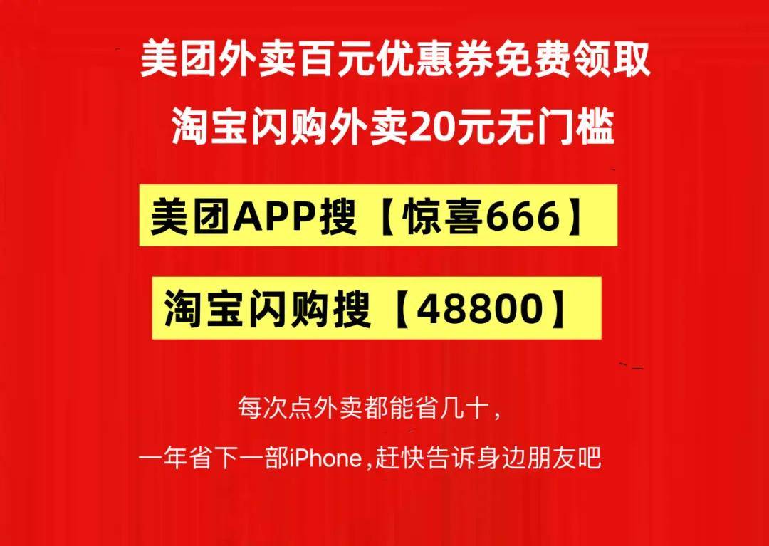【48900】:闪购惊喜口令,一键搜索就能抢到无门槛外卖福利,每天都能领取,实惠不间断。