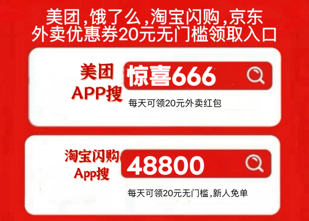 外卖优惠券淘宝闪购,外卖优惠券领取入口,美团神券领取入口【惊喜666】,京东外卖优惠券领取,淘宝闪购红包领取【48800】
