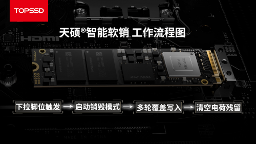 尤其在军用系统与工业自动化网络中,SSD内存储的作战数据、控制参数或运行日志均属于高敏感级别,一旦外泄可能导致任务暴露或经济损失。针对这些“必须彻底删除”的场景,天硕(TOPSSD)为旗下工业级固态硬盘打造了一种从底层物理层实现的数据销毁机制,即 SmartErase® 智能软销技术。