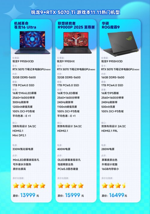 年终购物季,不少朋友打算用一台性能强悍的游戏本犒劳自己。当目光锁定在AMD锐龙9处理器与NVIDIA RTX 5070 Ti显卡的组合时,会发现机械革命、联想、华硕都拿出了自己的高端机型。配置看似相近,但设计思路和体验侧重其实大有不同。如果你正在机械革命苍龙16 Ultra、联想拯救者R9000P至尊版与华硕ROG魔霸9之间犹豫,不妨花几分钟看看这篇梳理——我们不谈虚的,只讲每台机器适合谁。