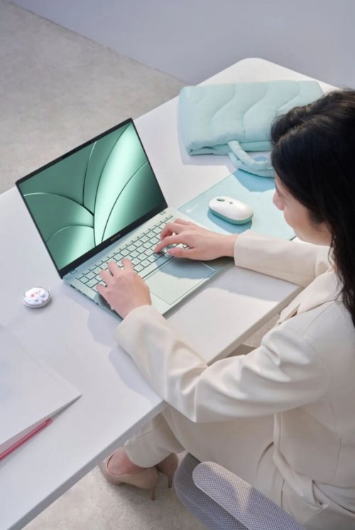 设计上,华硕a豆14 Air 悦享版戳中年轻人的审美点,鼠尾草青、蜜桃甜心、瑰蜜粉金三款多巴胺配色可选,不用滤镜就能出片,搭配A面的奢侈品级logo,整体辨识度非常高。
