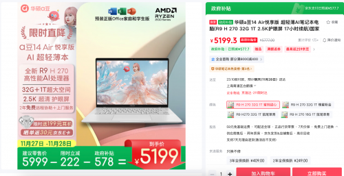 在轻薄本这条赛道里,主打年轻用户的华硕a豆系列一直是“颜值担当”。年末换机强推华硕a豆14 Air 悦享版,它不只是好看那么简单,轻薄机身里装下了AMD锐龙9 H 270处理器,再加上双重豆叮AI助手,更像是一位专为学生党、初入职场的新人量身定制的“高效助手”。