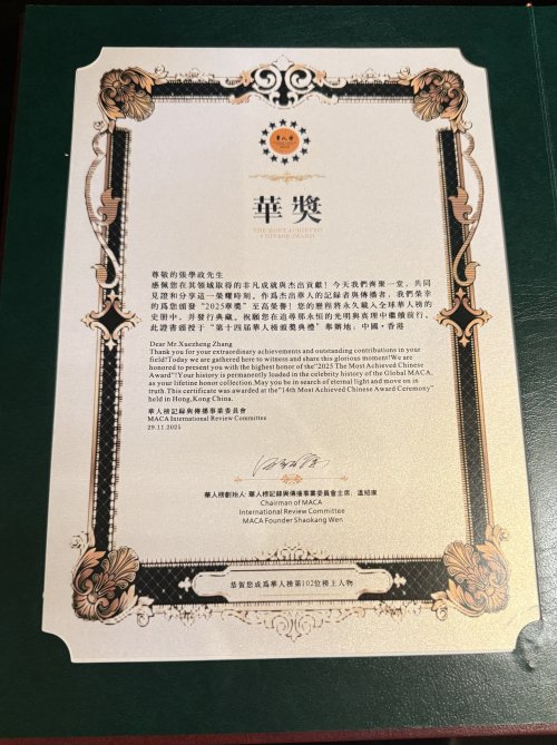 此次获奖,是对张学政勇于突破、坚守信念的肯定,更是对他作为华人之光、民营企业家楷模的致敬。