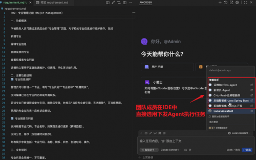 以“教育系统的专业管理模块开发任务”为例,演示如何基于aiXcoder自定义Agent功能,实现场景化智能体的定制、下发与高效应用。