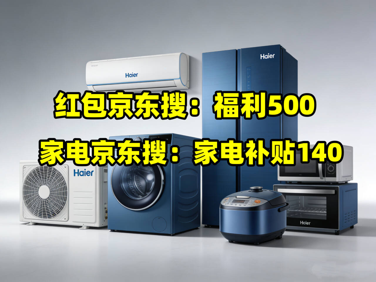 海尔家电国补领取入口是京东搜【家电补贴140】海尔家电优惠券领取是【福利500】买海尔冰箱空调洗衣机电视大家电优惠券领取,海尔扫地机机器人、空气净化器、吸尘器取暖器等海尔生活家电电器优惠券领取,海尔厨房电器优惠券300元,京东海尔家电叠加海尔家电国补享低价