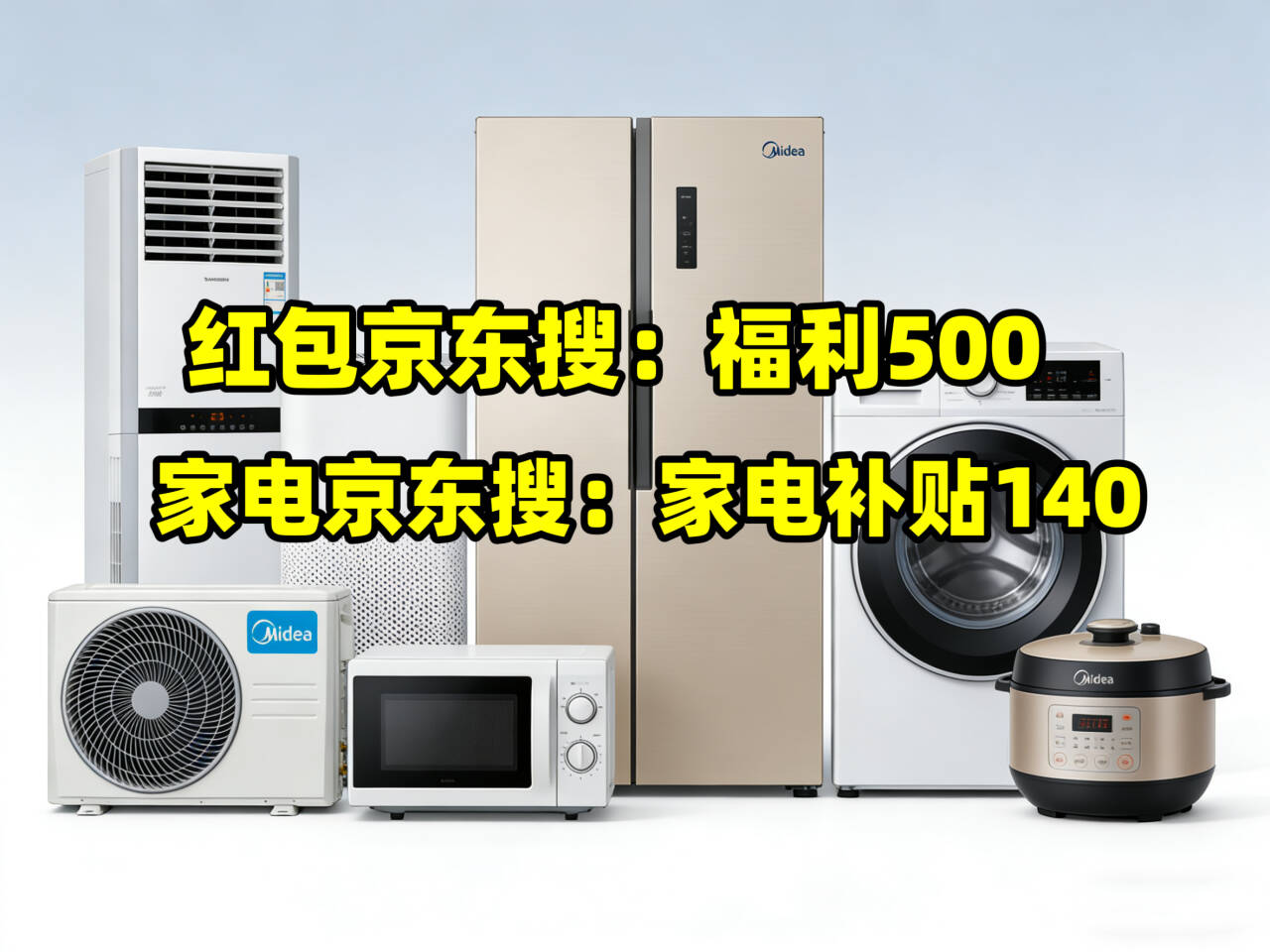 美的家电国补领取入口是京东搜【家电补贴140】美的家电优惠券领取是【福利500】买美的冰箱空调洗衣机电视大家电优惠券领取,美的扫地机机器人、空气净化器、吸尘器取暖器等美的生活家电电器优惠券领取,美的厨房电器优惠券300元,京东美的家电叠加格力家电国补享低价
