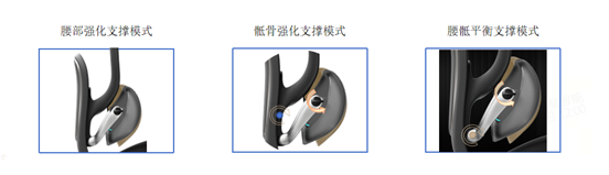·其双弹簧动态撑腰系统能够在前倾、正坐与后仰状态下自动调整受力点,维持腰椎自然 S 型曲线。