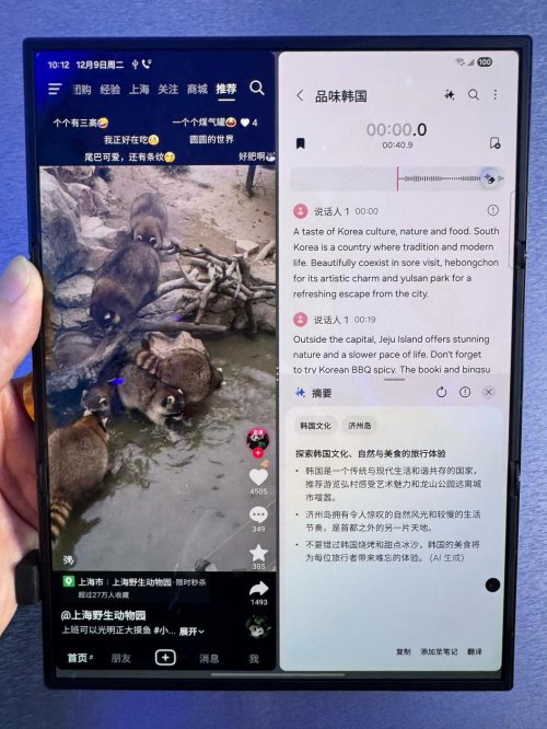 它能同时开启3个竖屏应用程序,就像同时使用3台手机一样,并可根据需要自由调整应用程序的大小。举个例子,编辑的日常工作就是写稿,有时需要一边查阅热点信息,一边查资料,一边写文案。这时,只需使用Galaxy Z TriFold在屏幕左侧打开热点新闻,中间屏幕开启WPS,右边屏幕开启网页查阅资料。如果工作途中,有来电接入,也不会打乱工作布局或节奏,只需轻触屏幕右下角任务栏,即可一键恢复之前的工作界面。