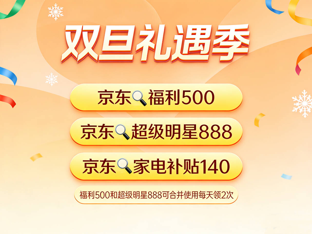 京东双旦礼遇季是京东衔接圣诞与元旦的年末大型促销活动,集结全品类好物,以“国补+平台满减+专属红包”三重让利为核心,覆盖家电、数码、苹果产品等热门品类,是2025年末最后一波国家级补贴狂欢,优惠力度比肩双12,年末囤货不容错过!