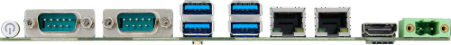 ·6×COM口(支持RS232,其中COM1/COM2 支持 422/485,可选 RI/5V/12V 带电)、10×USB(4×USB3.0)、2×RJ45双网口;