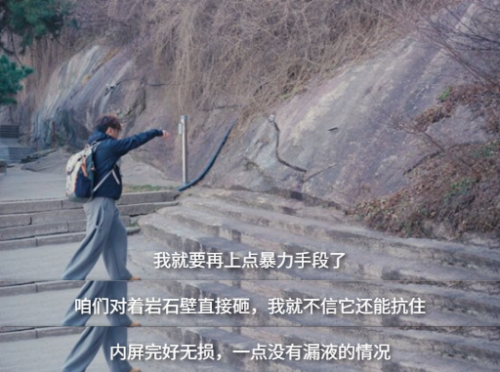 五岳不同材质与坡度的地形,堪称日常生活中手机可能遭遇的“终极致命场景”。将五岳作为“天然跌落实验室”,模拟真实极限场景,这脑洞不可谓不大。尖锐岩面考验的是玻璃的瞬间抗冲击力,台阶边缘挑战的是机身局部结构强度,湿滑苔石则模拟了脱手后落点的不确定性。