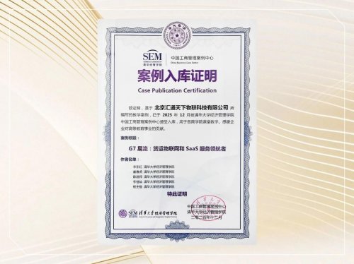 近日,清华大学经济管理学院中国工商管理案例中心正式将《G7易流:货运物联网和SaaS服务领航者》教学案例收录入库。该案例由清华大学经济管理学院李东红教授团队联合编写,将作为高质量教学材料,用于国内外商学院课堂教学。