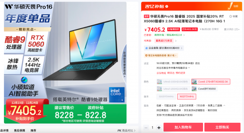 当下,拥有多场景适配能力的笔电已成为众多用户的购机首选,而多场景适配的核心,在于性能、便携与体验的完美平衡。华硕无畏Pro16 2025凭借卓越好屏、硬核性能以及高能战力,轻松满足商务办公的高效协同,创意设计的灵感迸发,以及竞技游戏的酣畅淋漓。年终购机叠加至高822.8元政府补贴,到手价7405.2元起。