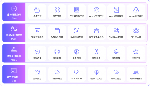 神州数码构建了覆盖算力、模型、知识、应用全链路的全栈 AI 技术体系,以自主创新打破技术壁垒。核心产品 “神州问学” 企业级 Agent 中台,作为 “AI for Process” 理念的核心实现平台,打通四大要素,解决企业 AI 落地 “选、练、用、管” 全环节难题,提供全套 GenAI 智能应用工程流水线。其四层架构设计层层递进:IaaS 层提供异构算力、公有云 / 私有云及智算中心资源,通过神州鲲泰智算系列服务器实现多元算力统一纳管;MaaS 层覆盖模型选择、训练、部署全流程,支持多模型适配与本地微调;PaaS 层强化私域数据与知识管理,配备增强检索工具;SaaS 层实现应用开放与 Agent 开发,适配各类业务场景。